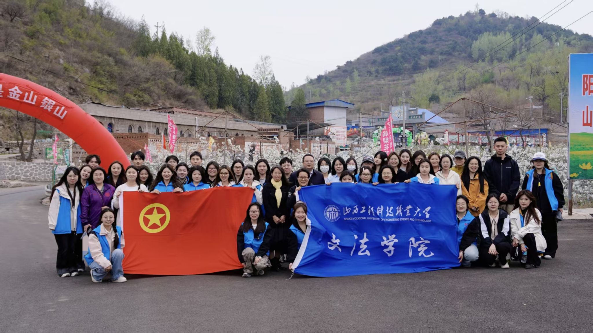 为了促使青年深入基层,了解乡村发展实际需求,增强社会责任感和使命感。大学生普法宣传协会于2025年4月18日组织部分成员前往阳泉市平定县东回镇西峪掌村开展了“法治春风拂梨乡 青春聚力助振兴”下乡活动。本次活动由副院长张鹏富带队,教产研办公室主任王小芬、教师代表唐慧俊、马启花、陈楠、武俊萍与学生49人参加。