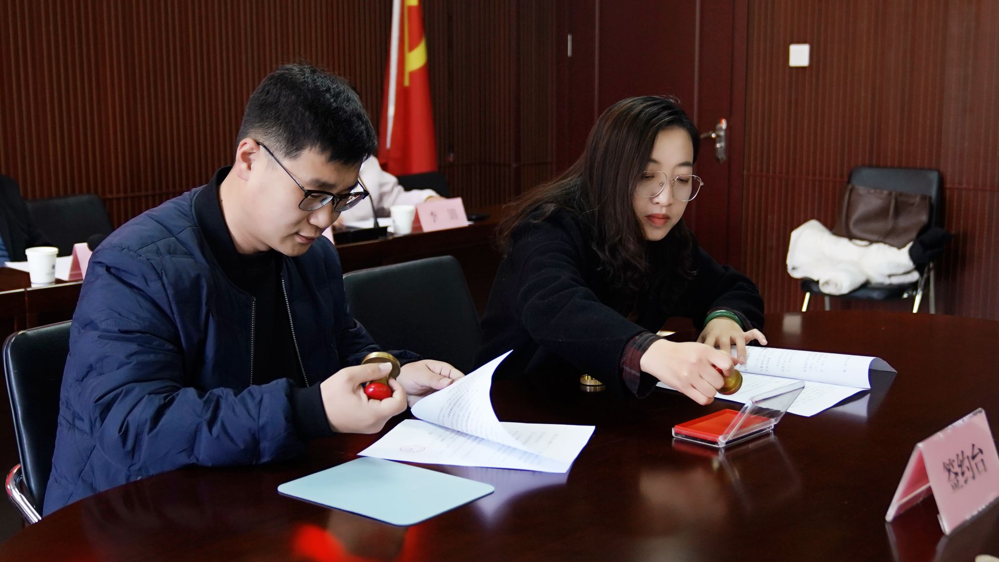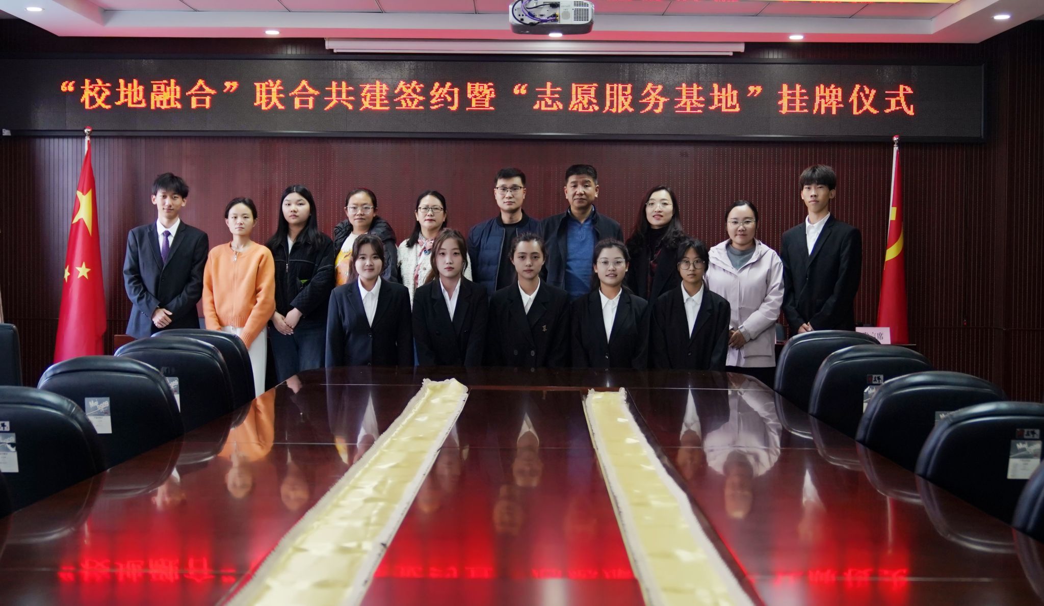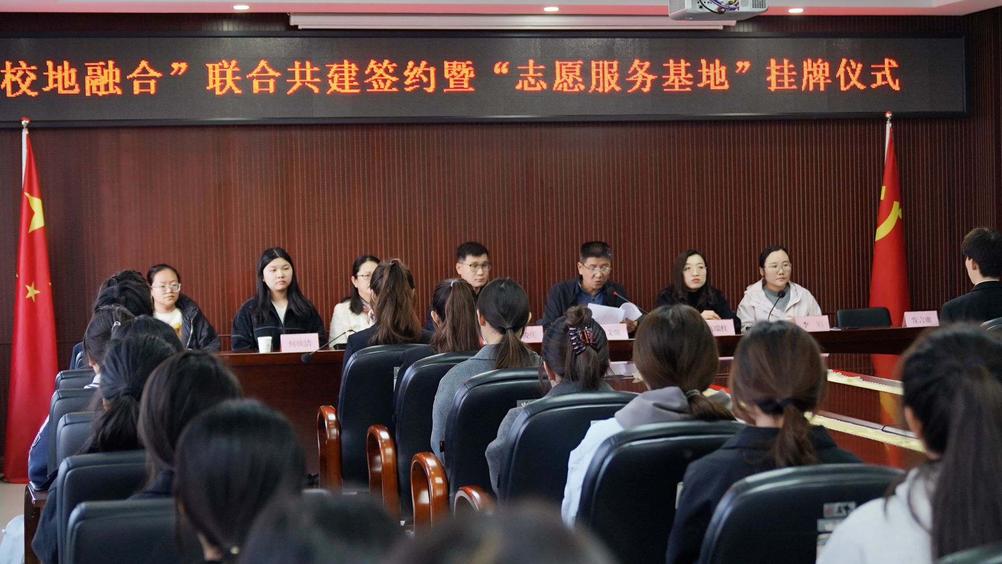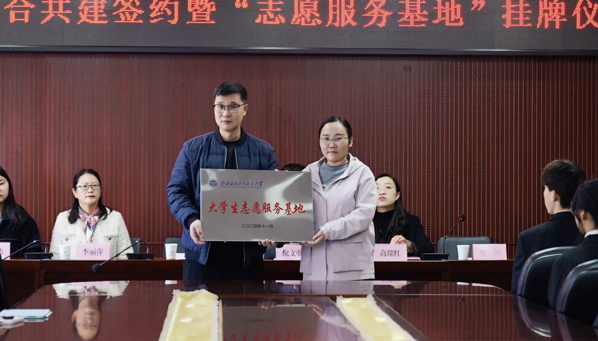 为更好推进校地合作,继承发扬志愿精神,2024年11月5日,花蝴蝶高清免费看片大全与安宁街道三水社区在行政2号楼220会议室举行“校地融合”联合共建签约暨“志愿服务基地”挂牌仪式。安宁街道三水社区主任陈俊庆、社区副书记李丽萍、社区副主任何欣洁、花蝴蝶高清免费看片大全党委书记倪文强、学工办负责人高瑞红以及部分社区工作人员和部分学生代表参加会议,仪式由院团委负责人李娟主持。