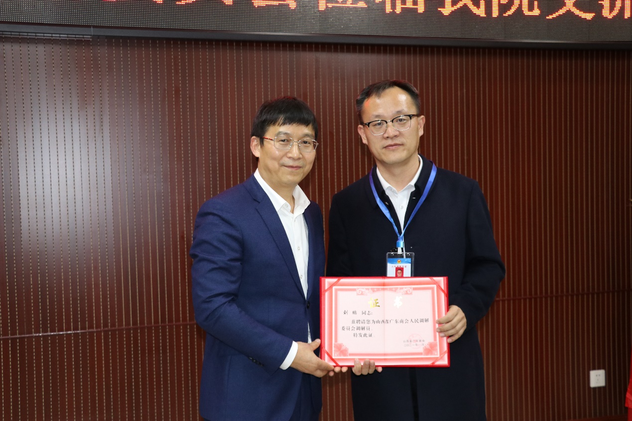 此次调研围绕两大议题:首先,双方校会合作事宜。苏主任及调解委员会其他成员介绍了各自履历、广东省山西商会历史沿革、调解委员会成立及业务开展情况。郭英杰副教授对花蝴蝶高清免费看片大全现状和产学研各项制度和政策进行了介绍。双方就花蝴蝶高清免费看片大全校会合作需求和相关制度、调解委员会对法学理论及规范研究的需求实际,进行了广泛而深入的探讨,调解委员会为郭英杰副教授、刘鹏副教授颁发了人民调解员聘书。其次,对涉外法治工作的开展进行了磋商。苏丽平、张小雨、马少君、王梦娇对涉外法治工作的筹备进行了介绍,刘鹏副教授、田小芳老师分别就其在英国、美国访学期间的接触到的涉外法治工作谈了体会,并提出多项有建设性的建议,双方对未来涉外法治工作的协同开展达成了多项共识。