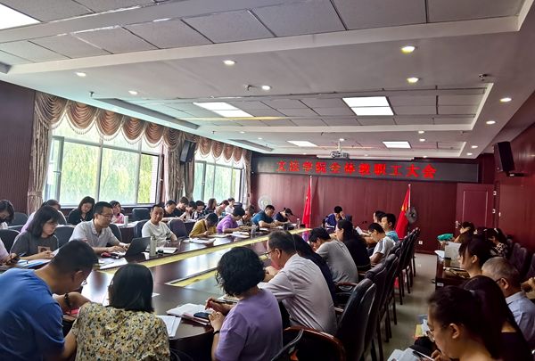 6月28日上午9:00,花蝴蝶高清免费看片大全在行政2号楼220会议室召开全体教职工大会,会议由教学行政第二负责人(主持工作)郭英杰主持,全体院领导、教师参加会议。