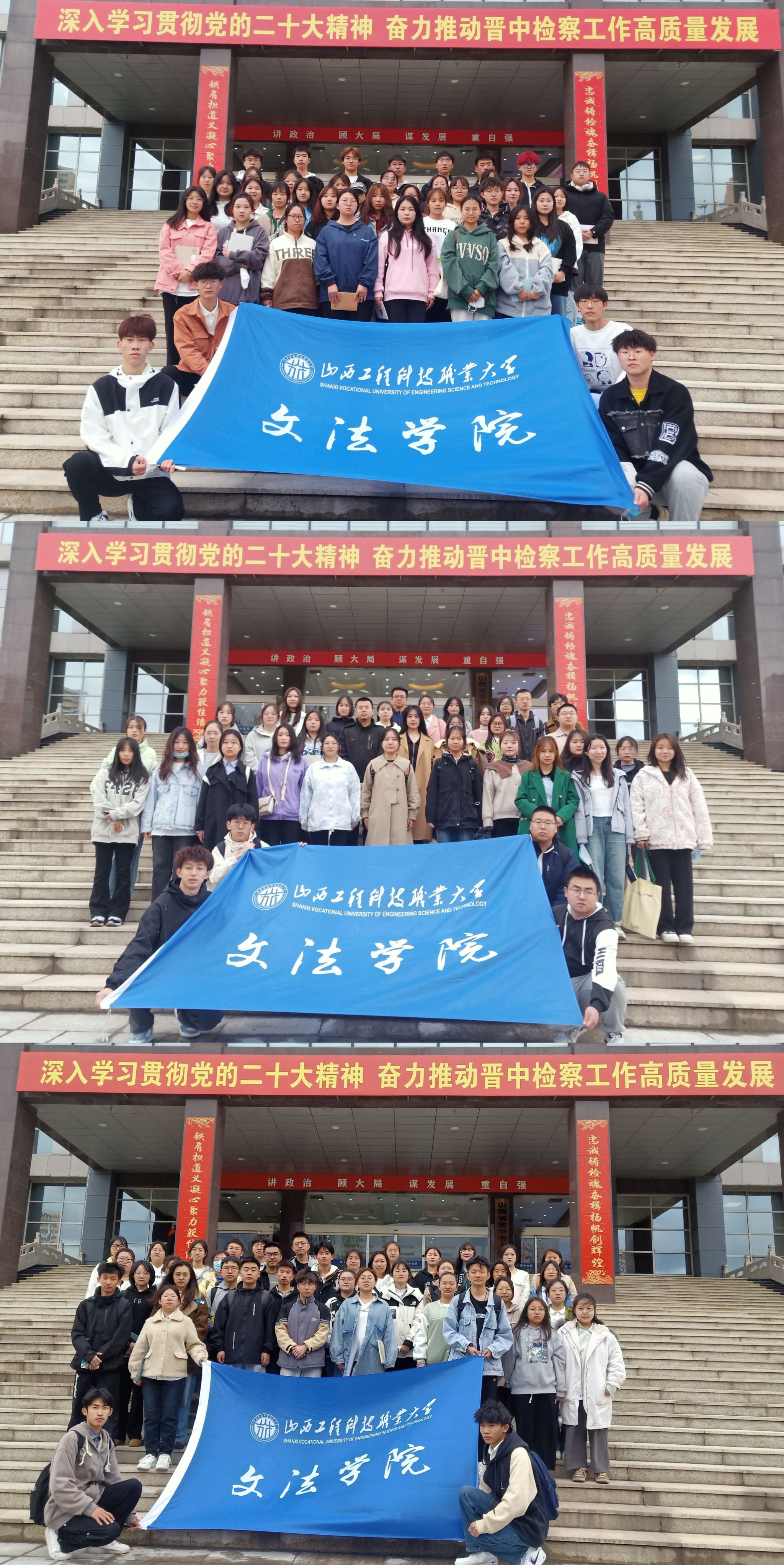 “体验式”“互动式”的参观学习模式,不仅丰富了同学们的人生阅历,同时也培养了同学们学法爱法的热情,把对法律敬仰的种子,悄悄种进同学们的心中。行程的最后,大家在检察院门口拍照留念,留下了最为珍贵的一段回忆。在今后的学习中,大家会按照高标准高要求学习法律知识,明辨是非,以优异的表现回报社会!