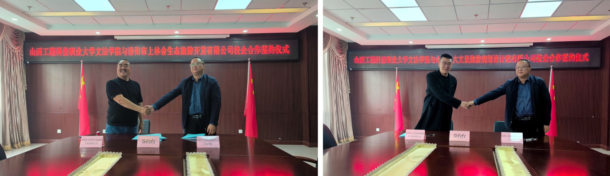 2024年10月16日下午,我院与汾阳市上林舍生态旅游开发有限公司及山西山大文景旅游规划设计院有限公司在行政2号楼220会议室举行校企战略合作签约仪式。汾阳市上林舍生态旅游开发有限公司董事长王维东携公司管理层相关人员、山西山大文景旅游规划设计院有限公司总经理齐志鹏、花蝴蝶高清免费看片大全教产研办公室主任王小芬、旅游规划与设计教研室主任左熹及专业全体教师参加了本次签约仪式,仪式由花蝴蝶高清免费看片大全副院长张鹏富主持。