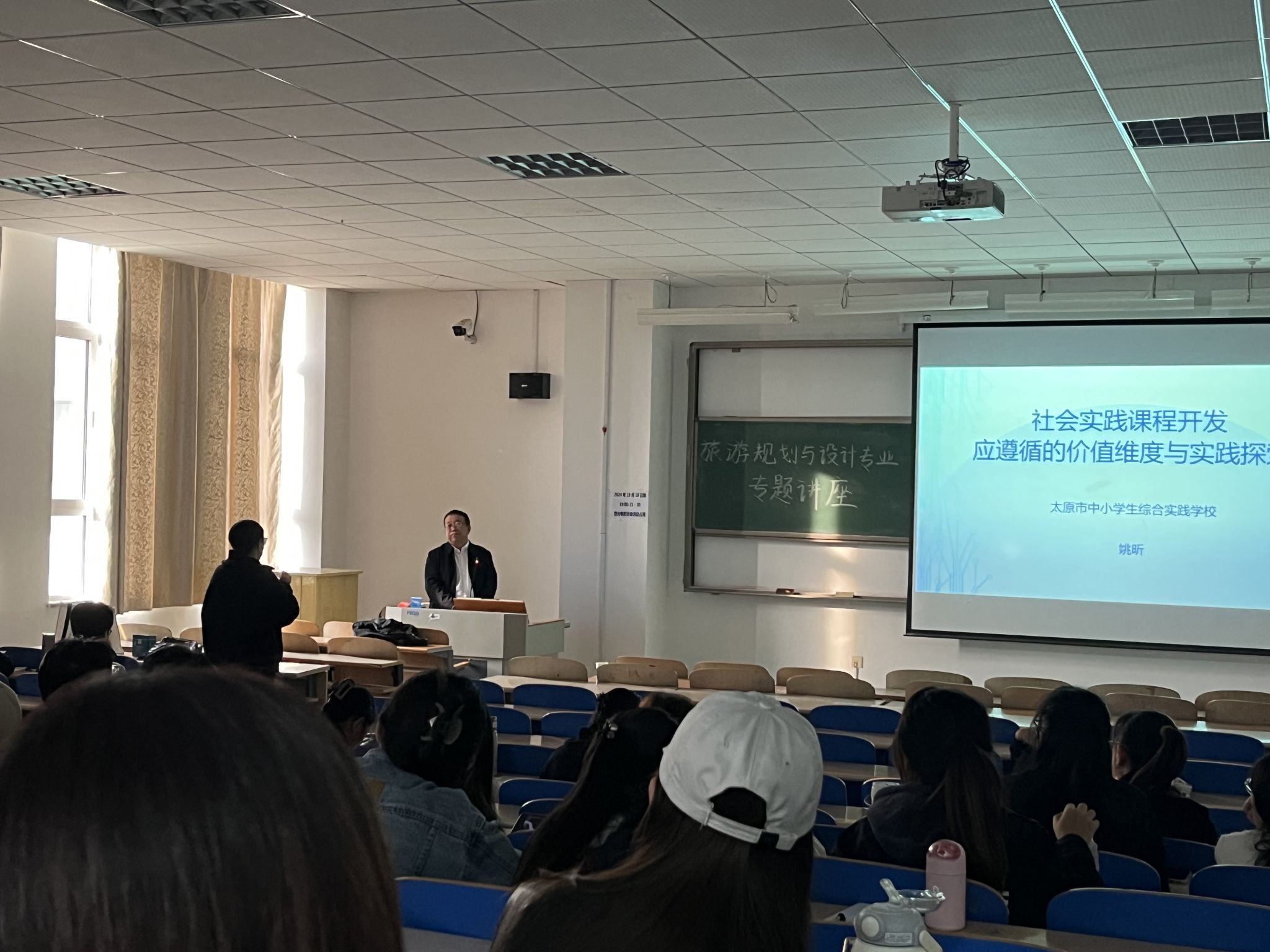 2024年11月1日,为了提升旅游规划与设计专业学生的专业素养,我院特别邀请太原市示范性综合实践基地党总支书记姚昕在T02教室举办“研学旅行课程设计与实施”学术讲座。部分专业教师、全体旅游规划与设计专业学生参会。