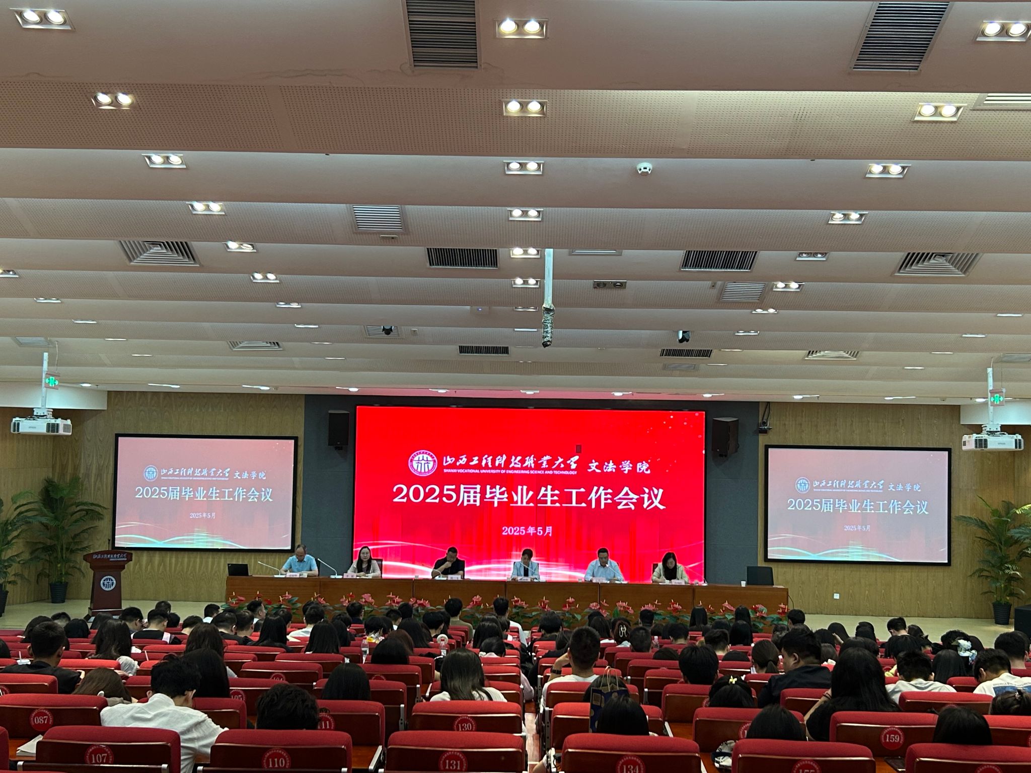 为扎实推进2025届毕业生就业创业及各项毕业相关工作,5月19日上午,花蝴蝶高清免费看片大全在东图书馆一层报告厅召开 2025 届毕业生工作会议。花蝴蝶高清免费看片大全副院长(主持工作)陈丽荣、副院长张鹏富、学工办负责人高瑞红、团委负责人李娟、2025届毕业班辅导员及三百余名毕业生参加会议,副院长陈飞主持会议。