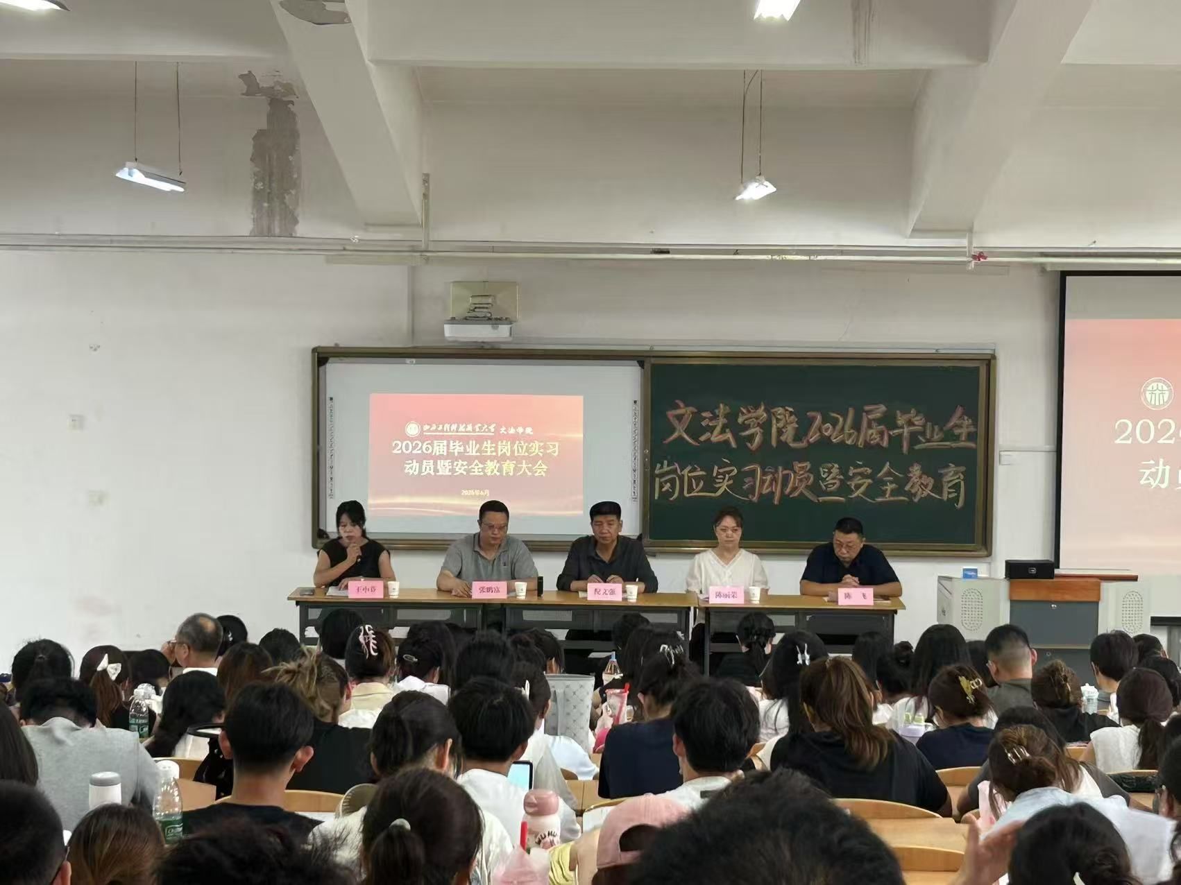 2025年7月2日下午,花蝴蝶高清免费看片大全在11号教学楼 T19教室召开“2026届本科毕业生岗位实习动员暨安全教育大会”,花蝴蝶高清免费看片大全党委书记倪文强、副院长陈丽荣(主持工作)、教学行政第二负责人陈飞、教产研办公室主任王小芬、学工办负责人高瑞红、实习指导老师、班主任及197名2026届毕业生参会,会议由副院长张鹏富主持。