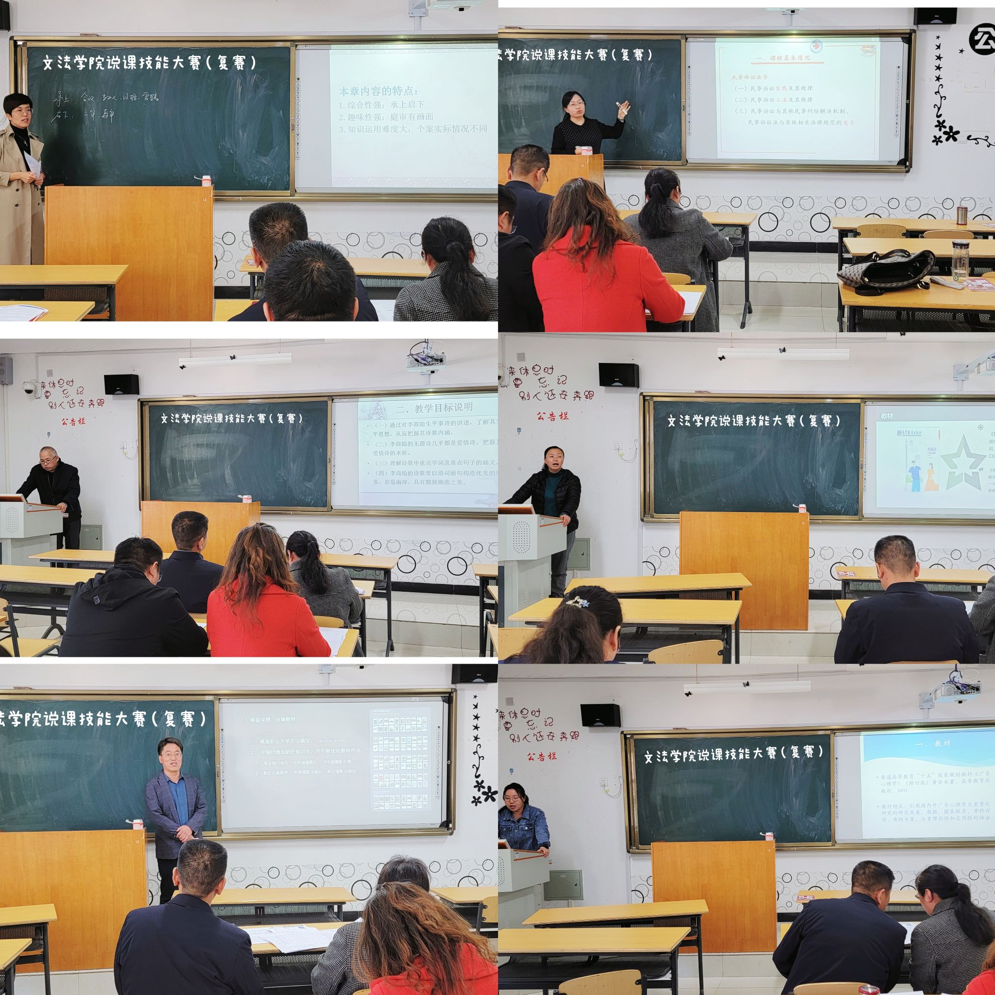 法律系:田小芳、刘香玲;汉语系:张林、张凤芹;新闻系:刘江、张一新老师参加了说课比赛的复赛。六位老师赛前准备认真充分,都能从说教材、说课程、说学生、说教法与手段、说教学程序、说教学程序的预测几个方面展开说明。田小芳老师从《第一审普通程序》这节课的综合性、趣味性、难度等几个方面进行了深入详细的分析,条理清晰地介绍了课程的教学目标、准确地区别了教学的重点和难点;刘香玲老师根据《当事人——共同诉讼人》这一课的特点,设计了程序公正理念、理论联系实际、程序法与实体法相结合、以学生为中心的启发式教学等有针对性的教学方法;张林老师在说《李商隐《无题》诗》这一课时利用作品示例娓娓道来;张凤芹老师的《普通话的音变——儿化》这一课结合小组合作探究学习发挥了学生的积极性和主动性,说课过程完整、条理;刘江老师说课巧妙使用影响世界和中国历史的珍贵照片来响应课程《摄影真实的力量》的主题;张一新老师用具体的案例说明广告是如何运用心理学当中的记忆原理,并强化记忆效果的。