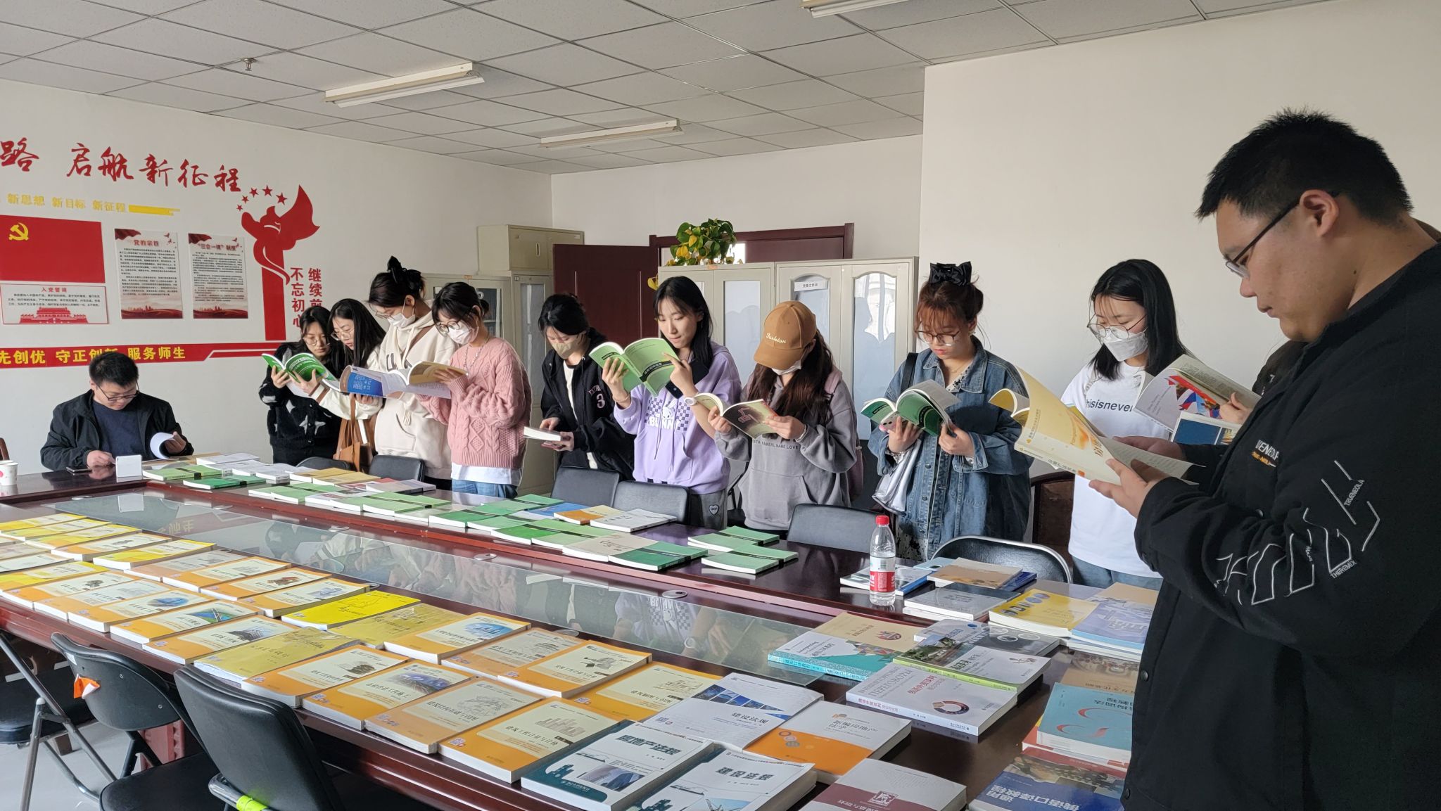 北京大学出版社编辑部胡云峰老师为专业教师精心准备了汉语言文学、对外汉语、新闻传播学、法学、外语、建设工程、交通工程等相关专业共200余种教材和专著供老师们学习和研讨,并和各学院专业老师进行了现场交流。